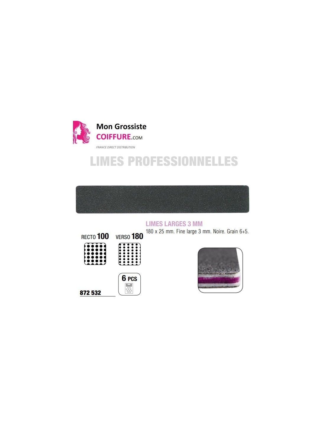 Limes larges sachet de 6. Epaisse 4mm Lime 6+5 .100/180 noir. Rectangle 180x25MM.