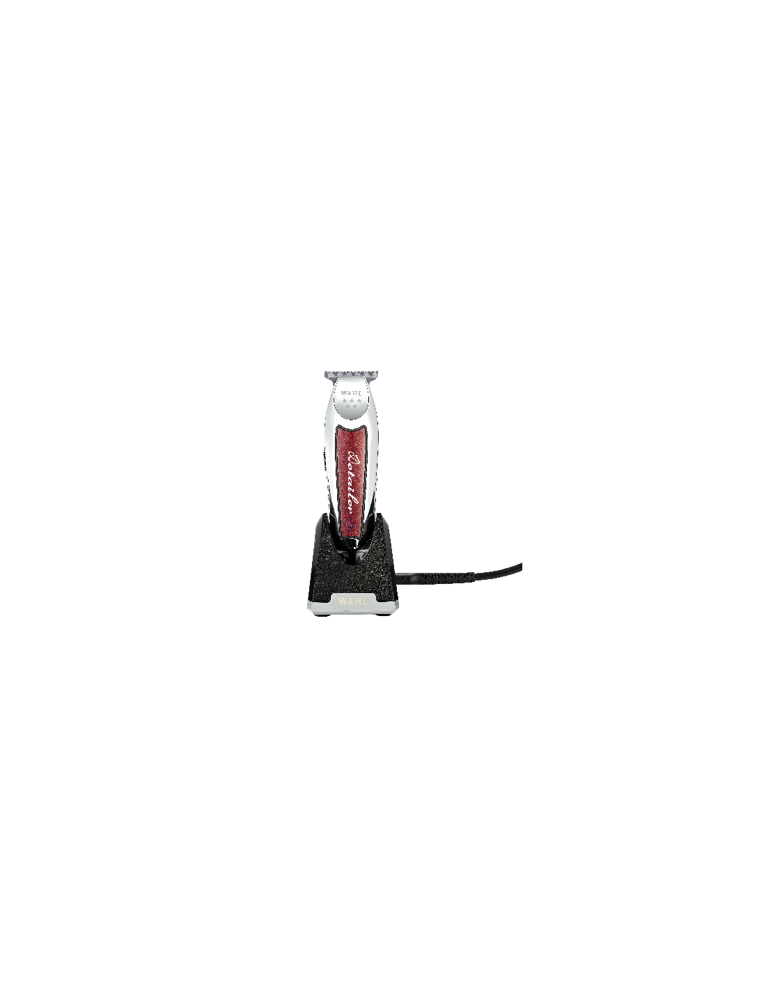 TONDEUSE PROFESSIONELLE WAHL DETAILER CORDLESS DETAILER : Mini tondeuse super rasante, moteur rotatif puissant, coupe, finition et rasage Largeur de coupe lame superieure 32mm lame inferieure 38mm Fournie avec 3 sabots faux-peignes 0.5 1.0 et 1.5mm, chargeur-transfo et base socle de charge brose et protege lame Fonctionne sur fil et sans fil, petite taille idéale pour les petites mains. Chargeur 60 min. Durée de fonctionement 100 min. sans fil